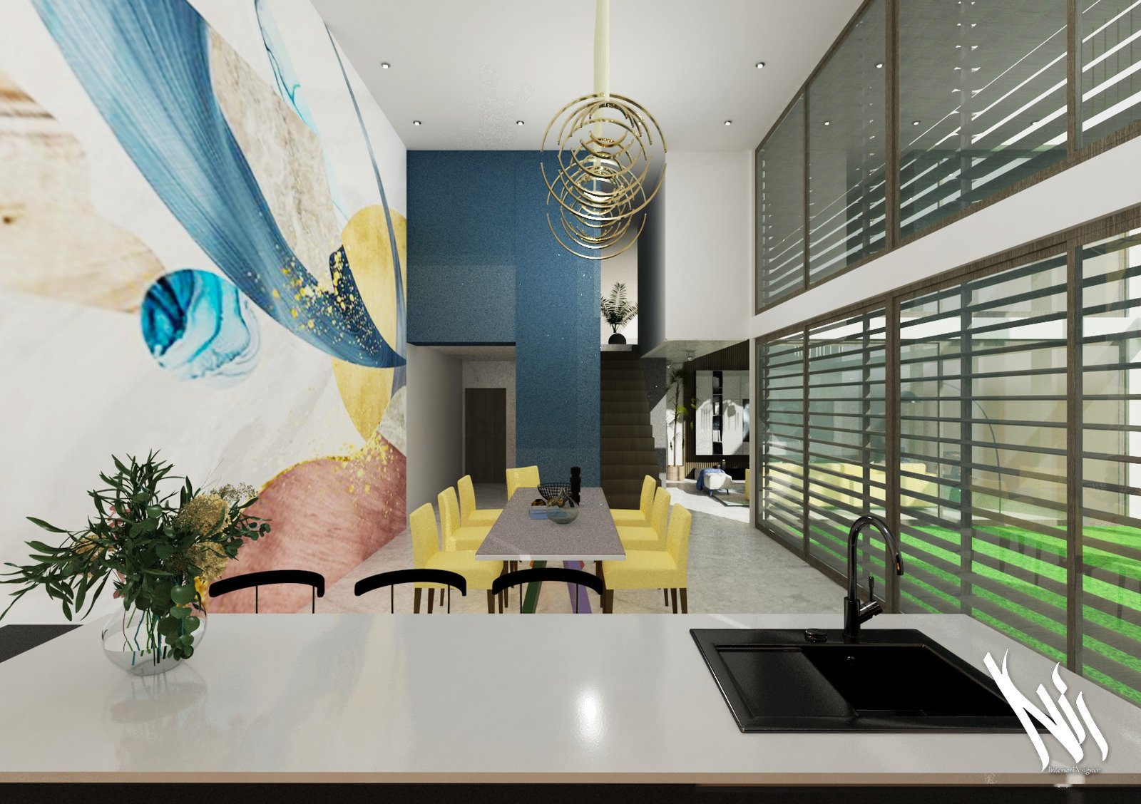 يُضفي "بلان دي" لمسةً من النور والحياة والعاطفة على هذه الفيلا العصرية المكونة من طابقين، حيث تُضفي المساحات المفتوحة حريةً في كل زاوية. مزيجٌ منعش من الأزرق والأصفر والأبيض يملأ المنزل بإشراقةٍ وحيوية، عاكسًا بهجة الحياة اليومية. يسمح التصميم المتناسق بتدفق الضوء الطبيعي، مما يخلق جوًا من الاتساع والحيوية.