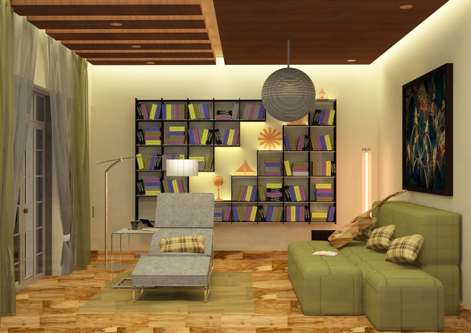 داخل هذا المنزل النابض بالحياة، تقع غرفة قراءة هادئة،تحيط به ألوان خشبية دافئة ولمسات خضراء هادئة. صُممت هذه المساحة لتُشعرك بالتواصل مع الطبيعة، وتوفر ملاذًا مثاليًا للاسترخاء والتأمل واستعادة النشاط. كل تفصيل، من الألوان إلى القوام، مُختار بعناية لإثارة المشاعر وجعل الفيلا ليست مجرد منزل، بل بيتًا مليئًا بالدفء والسلام والإلهام.
